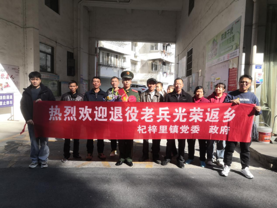 12月1日,迎接现场,随着退役军人吴彦远到家门口,工作人员拉出“热烈欢迎杞梓里镇退役军人光荣返乡”的横幅,与家属们随即上前迎接,为退役军人献上鲜花,热情握手问候,并组织亲属、退役军人和工作人员共同合影留念,同时感谢他为国家贡献青春、为国防和军队建设挥洒汗水,为家乡争得荣光,希望他发扬部队光荣传统,尽快转变角色,适应新环境,谋求新发展,为家乡建设和经济社会发展作出新的贡献。工作人员主动仔细讲解返乡需要办理的事项,减少办理期间不必要的“弯路”,并且能够立即办理的事项,现场收集相关材料进行办理。
