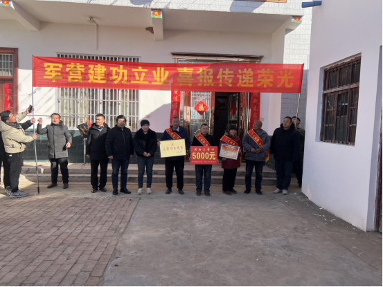 喜报传佳音,尊崇暖军心。一张立功受奖喜报,不仅承载着军人的无上荣誉,更体现出军人家庭为国防建设的默默付出,彰显出社会的高度认可。为弘扬拥军优属、拥政爱民的光荣传统,进一步激发现役军人在部队安心服役,投身于国防建设的热情,在春节前后,砀山县持续开展送喜报上门活动,为广大现役军人及军属送上诚挚祝福与暖心关怀,在新春为军属增添新喜。