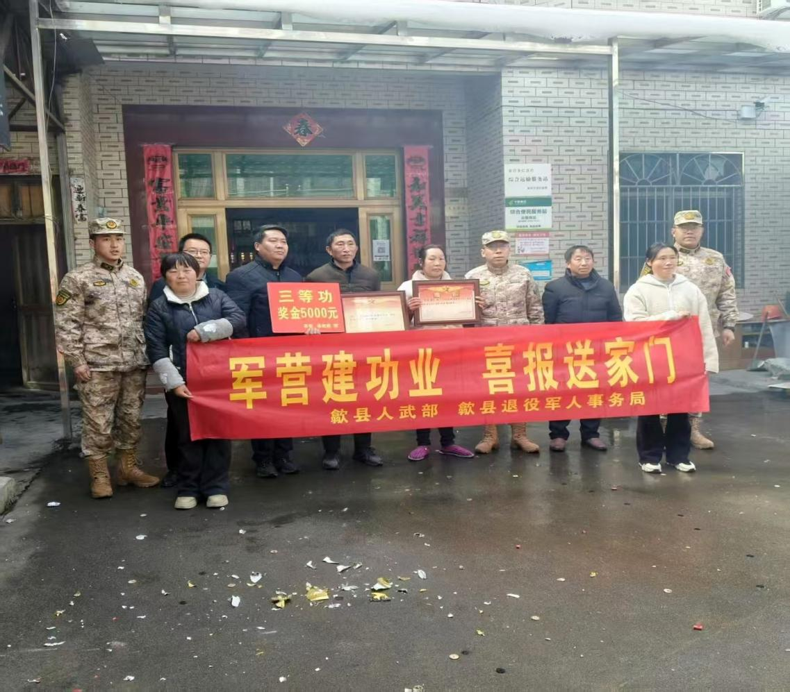 为进一步弘扬新时代拥军优属的光荣传统,营造尊崇军人的良好氛围,2月18日,歙县人武部、县退役军人事务局联合金川乡武装部一行人为荣立三等功的现役军人吴杰的家属送立功喜报,让军人军属共享尊崇荣光。
