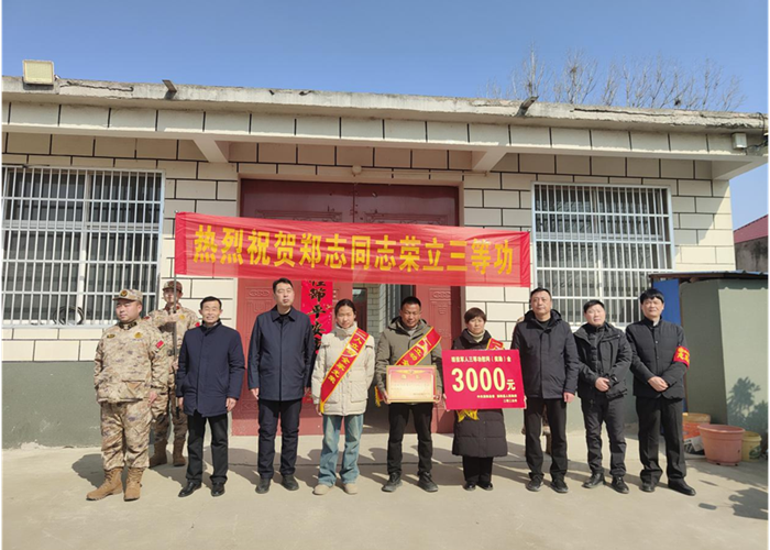 为弘扬拥军优属光荣传统,增强军人家属的荣誉感和自豪感,营造“一人当兵,全家光荣”的良好社会氛围,2月19日,涡阳县星园街道、县退役军人事务局组织慰问组向荣立三等功的现役军人郑志、张鲲鹏、孙海洋家中送达立功喜报,并向军人家属表达衷心的祝福和崇高的敬意。