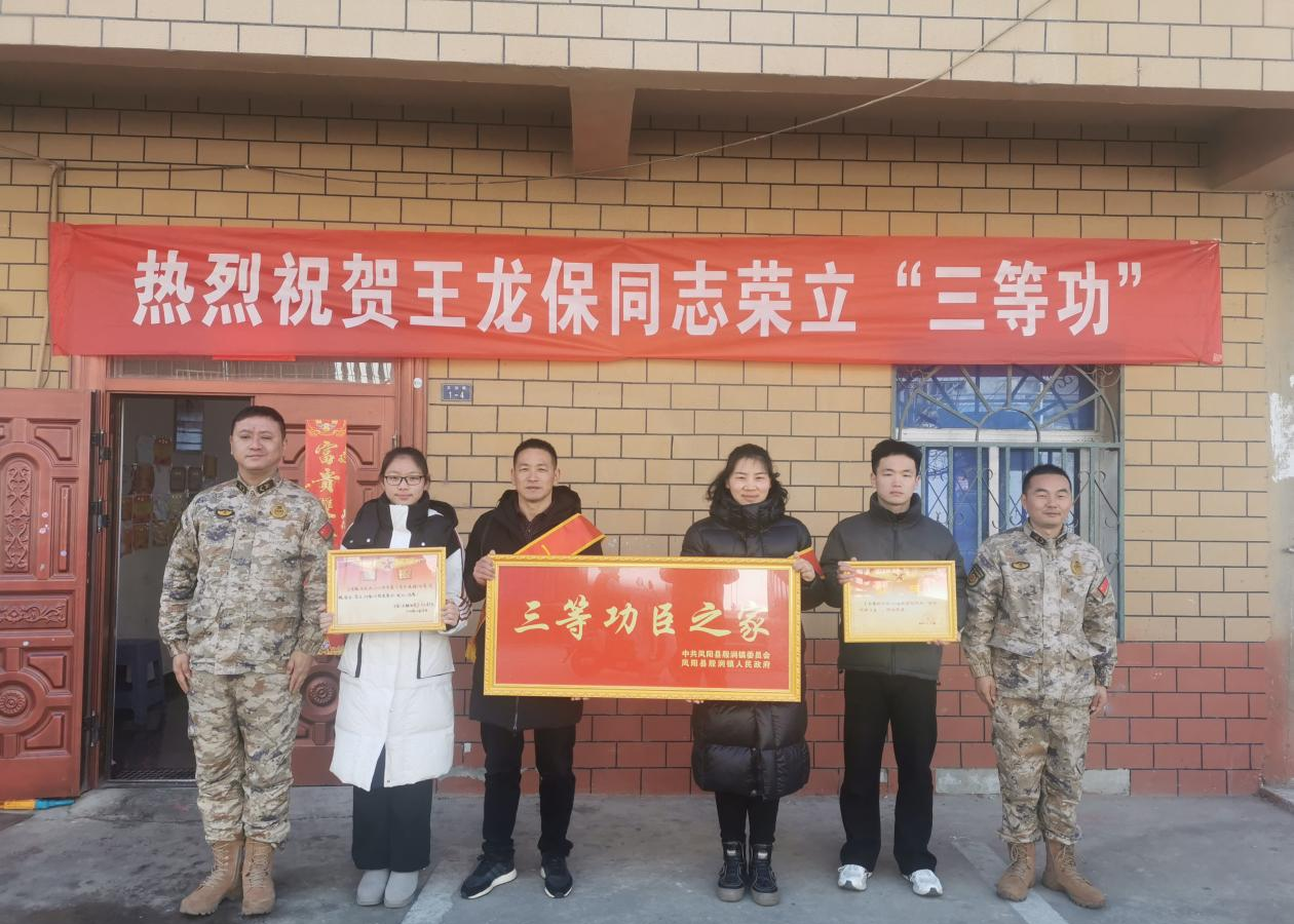 近日,凤阳县退役军人事务局联合殷涧镇武装部组成送喜报队伍,在喜庆的锣鼓声中,带着满满的敬意与祝福,向荣立三等功的现役军人王龙保送上喜报和慰问金,为其本人及家属佩戴上荣誉绶带。