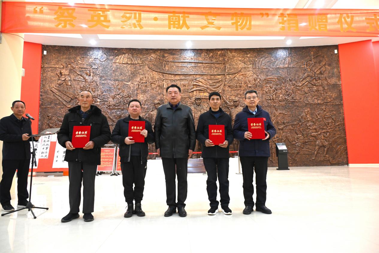 安徽省新四军历史研究会、定远县新四军历史研究会、定远县退役军人事务局等相关单位人员、在定远县战斗过的老一辈革命家的后人、文物捐赠人参加了捐赠仪式。(高鑫)