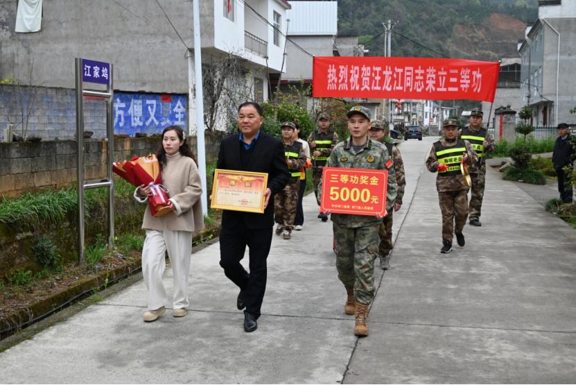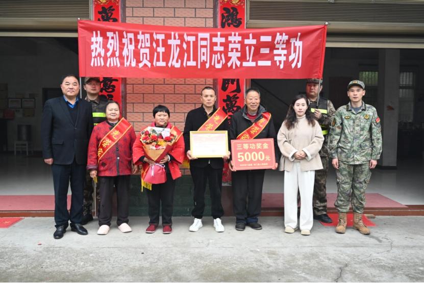 3月28日上午,安徽省黄山市祁门县退役军人事务局联合当地老兵志愿服务队前往古溪乡,为现役军人汪龙江家属送去三等功喜报,并向他们表示热烈祝贺。