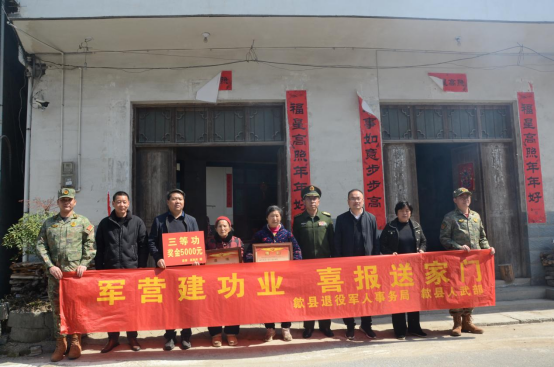 歙县长陔乡为荣立三等功军人家庭送喜报