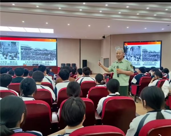 为纪念中国人民抗日战争暨世界反法西斯战争胜利80周年,弘扬伟大抗战精神,激发青年学生的爱国情怀。 5月13日,全国高校“中国共产党人精神谱系”宣讲团成员、全国模范退役军人、全国老兵宣讲团成员许玉亭应邀到亳州市第五中学作宣讲报告,该校800余名师生现场聆听报告会。