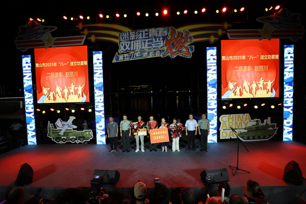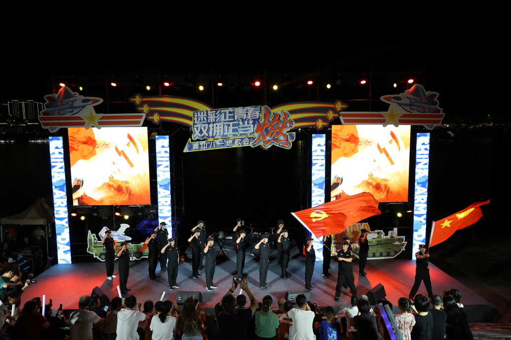 七月的黄山热情礼赞,新安江畔双拥灿烂。7月26日晚,黄山市屯溪河街上演“八一”燃歌会,一场别具一格的音乐盛宴唱响“爱我人民爱我军”的荣耀时刻,为中国人民解放军建军98周年献上深情祝福。