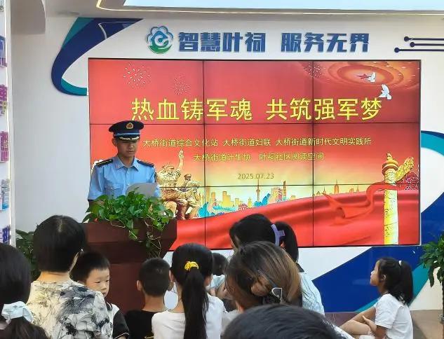 国无防不立,善教得民心。国防教育是提高全民素质、培塑民族精神的重要途径。7月23日上午,大桥街道综合文化站、妇联、计生协、新时代文明实践所联合叶祠社区阅读空间邀请空军某院校学员王铭旭开展国防教育活动,现场参加的有20多名家长及儿童。