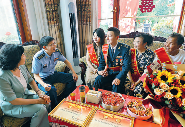接过喜报,张文鼎心情激动,他说:“在婚礼这天送来喜报,让我的人生重要时刻有了特别的意义。今后,我会将军地领导、亲朋好友的关爱祝福化为动力,努力把祖国守好、把小家建设好!”