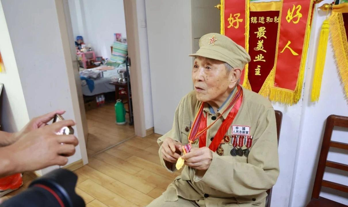 在籍山镇长塘村,96岁的徐福康老人家中同样暖意融融。这位1929年出生的抗美援朝老战士曾担任司令部文员,其家族传承着深厚的从军报国情怀,每一代后辈都有人参军入伍,展现了家国精神的代际接力。当日,县退役军人事务局工作人员为他送来量身定制的新军装,尽管年近百岁,徐老仍行动敏捷、表达清晰,思维敏锐。他感慨道:“现在的生活比以前好太多了,多亏了党和政府,年轻人要珍惜时光,多学习知识。”拍摄现场,他挺直脊梁,眼睛炯炯有神,仿佛重回青春岁月,那份对国家的感恩和对后辈的期许,深深感染了在场所有人。