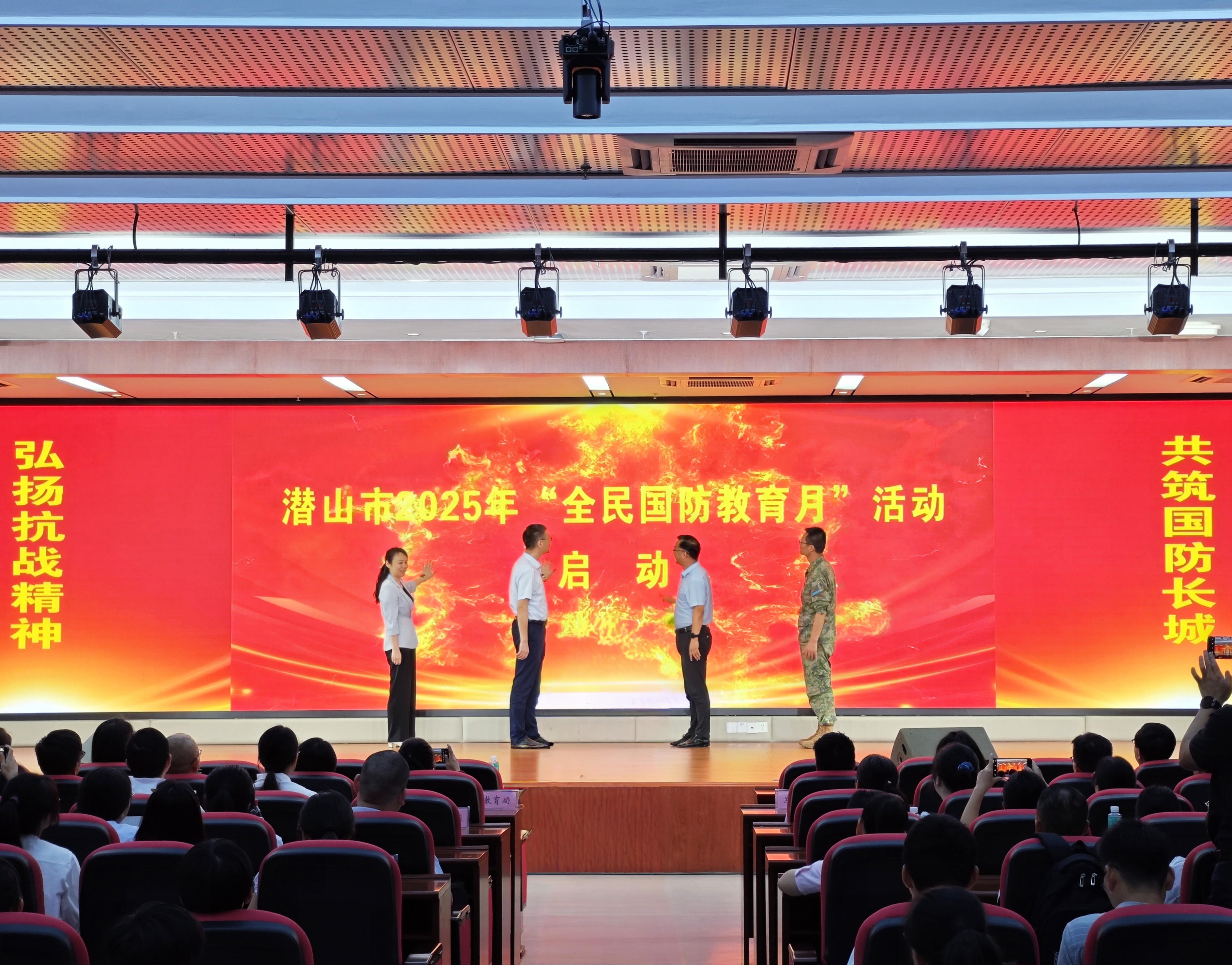 9月19日,“弘扬抗战精神 共筑国防长城”潜山市2025年“全民国防教育月”活动启动仪式暨全民国防教育知识竞赛在市人武部大礼堂举行。安庆市委宣传部副部长高炬、安庆市邮政公司副总经理张传春,潜山市委常委、宣传部部长华小芬,潜山市委常委、市人武部部长谭亚明等分别出席活动。市直单位、群众、学生代表,全民国防教育知识竞赛参赛队员等200余人参加启动仪式。