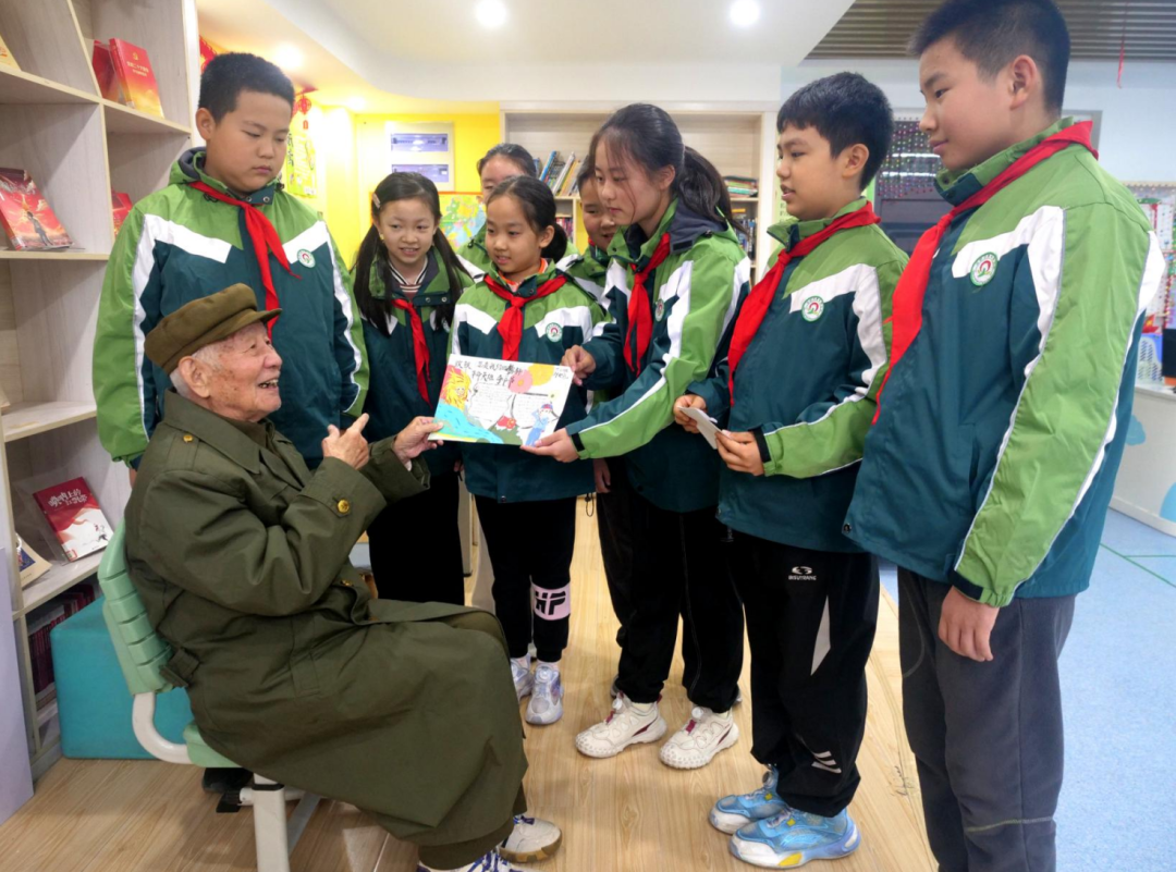 “爷爷,打仗的时候你们怕不怕?”活动现场,孩子们稚嫩却真挚的提问重燃老兵热血。他目光如炬,语气坚定而果决:“不怕!死都不怕!” 铿锵有力的回答掷地有声,感染现场。随后,老兵缓缓讲述起行军途中以山芋充饥、寒冬腊月裹着稻草御寒的峥嵘过往,朴实的话语里满是艰苦岁月的厚重,让那段遥远的红色记忆变得鲜活可触,深深烙印在孩子们心中。