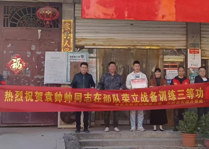 近年来,天静宫街道办事处党委、政府高度重视双拥工作,积极落实各项拥军优属政策,通过为立功受奖现役军人家属送喜报等方式,传承拥军优属、拥军爱民的优良传统,构建“让军人成为全社会最尊崇的职业”的强大宣传氛围,把思想政治引领工作推向新的高度。(尹旗)