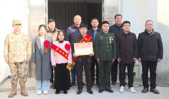 大皖新闻讯 2月11日,蒙城县人武部、蒙城县退役军人事务局及双涧镇政府相关负责人,到双涧镇杨圩村李苏南的家中,为蒙城籍现役军人李苏南及家人送上二等功臣喜报及立功牌匾。