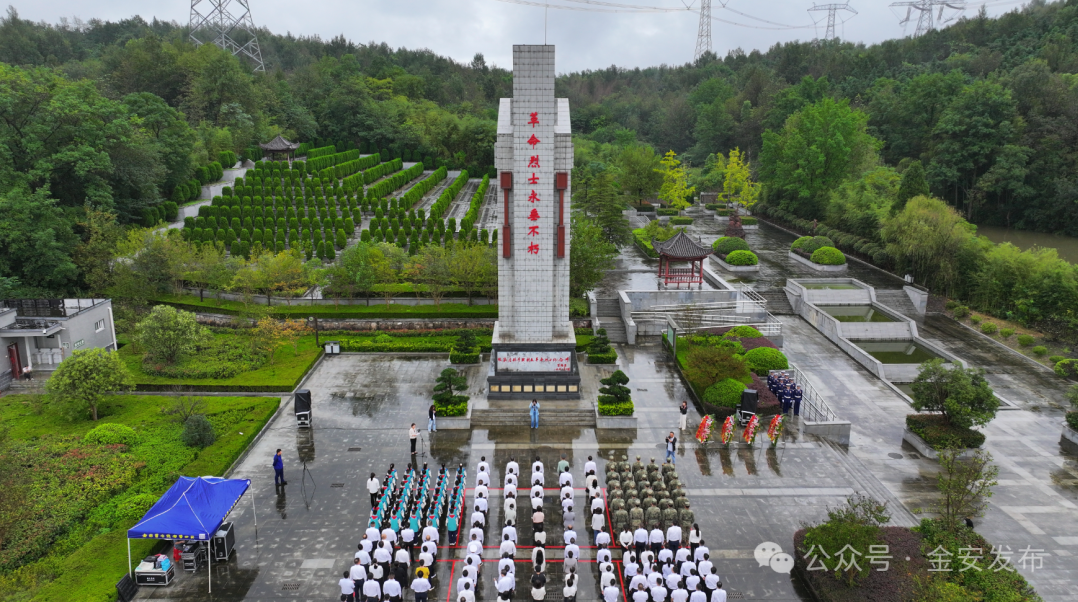 为纪念中国人民抗日战争暨世界反法西斯战争胜利80周年,9月30日,六安市金安区在张家店战斗烈士陵园举行2025年烈士纪念日公祭活动,区四个班子领导、部分干部群众代表、中小学生近200人参加公祭活动。