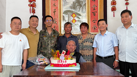 近日,含山县环峰镇辖区内迎来了一位特殊长者的百岁寿辰,含山县退役军人事务局及镇村工作人员携鲜花、生日蛋糕、慰问金专程探望老复员军人罗道祥,为这位历经烽火岁月、奉献青春保家卫国的英雄,送上最温暖的生日祝福。