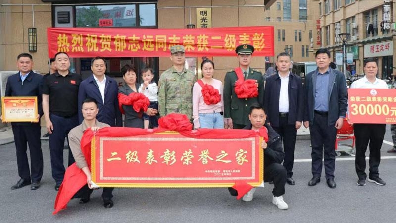 明光市为受到部队二级表彰的军人送喜报