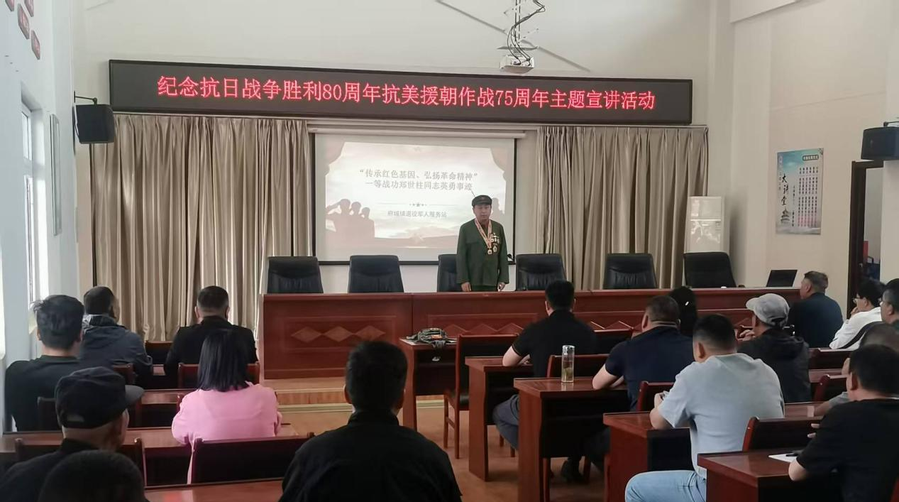 为纪念抗日战争暨世界反法西斯战争胜利 80 周年、抗美援朝作战 75 周年,近日,凤阳县退役军人事务局联合府城镇退役军人服务站,邀请辖区内一等战功参战老兵郑世柱同志走进社区,开展“传承红色基因 弘扬革命精神”红色宣讲活动。