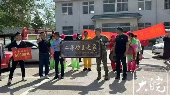 五四青年节前夕,怀远县人武部、县退役军人事务局联合包集镇人武部走进红色热土包集镇高皇村,为荣立二等功的现役军人徐国栋家庭隆重举行送喜报仪式。