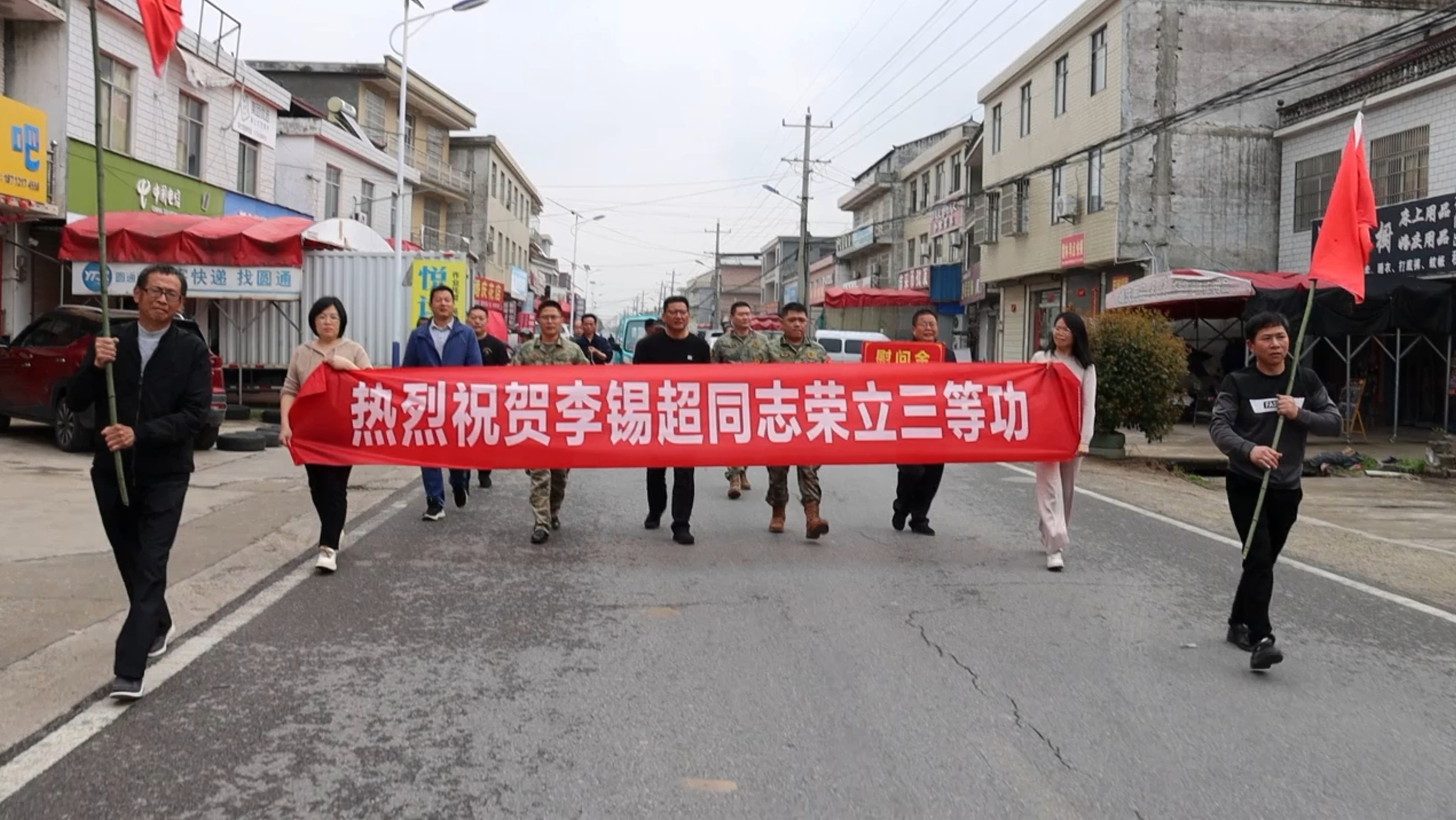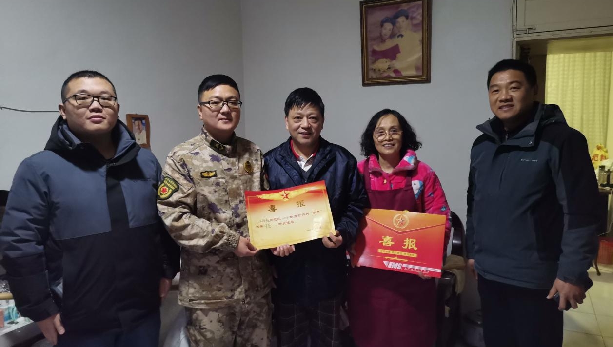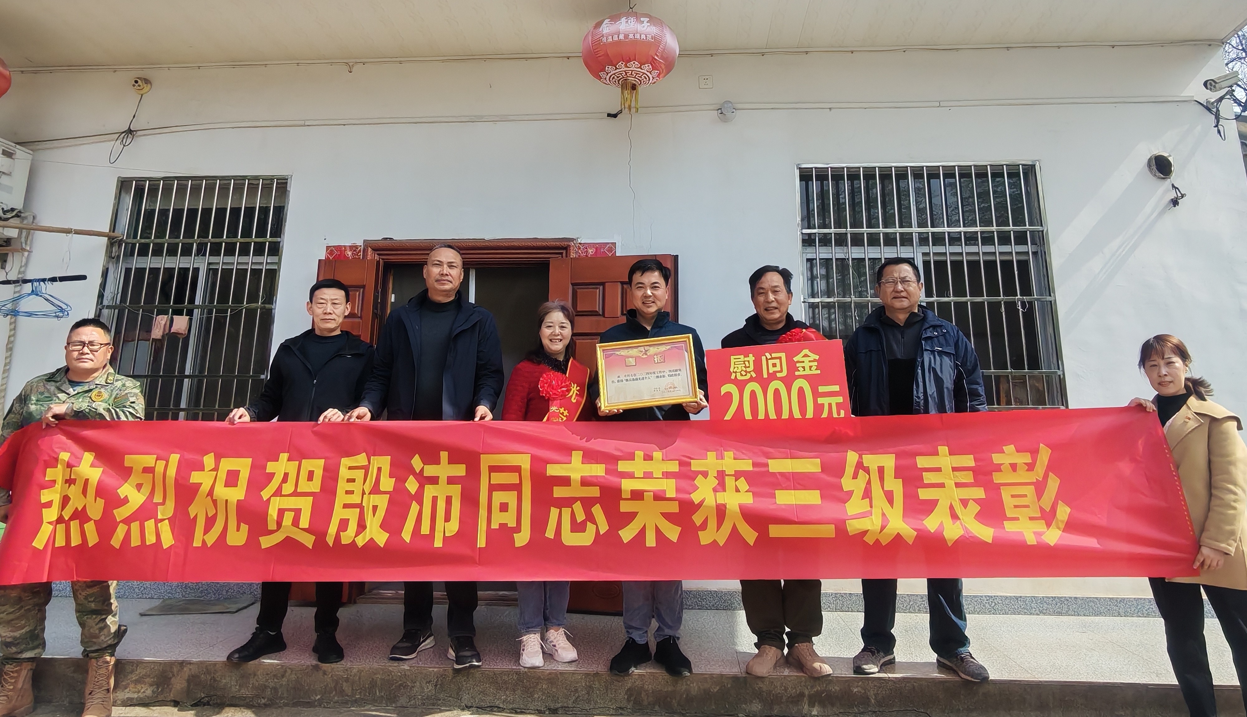 4月1日上午,太湖县退役军人事务局、晋熙镇政府、长河社区等单位工作人员组成送喜报队伍,为荣获“三级表彰”的现役军人殷沛同志及其家属送去立功喜报和慰问金,共同见证功臣荣光。