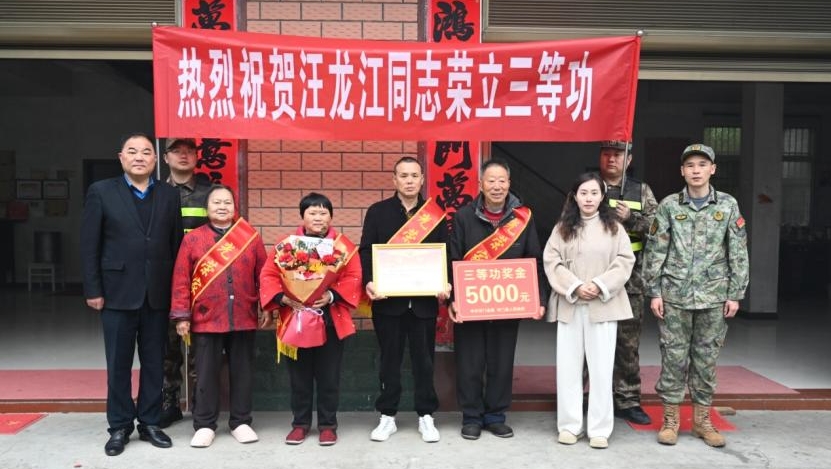 3月28日上午,安徽省黄山市祁门县退役军人事务局联合当地老兵志愿服务队前往古溪乡,为现役军人汪龙江家属送去三等功喜报,并向他们表示热烈祝贺。