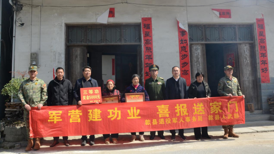 歙县长陔乡为荣立三等功军人家庭送喜报