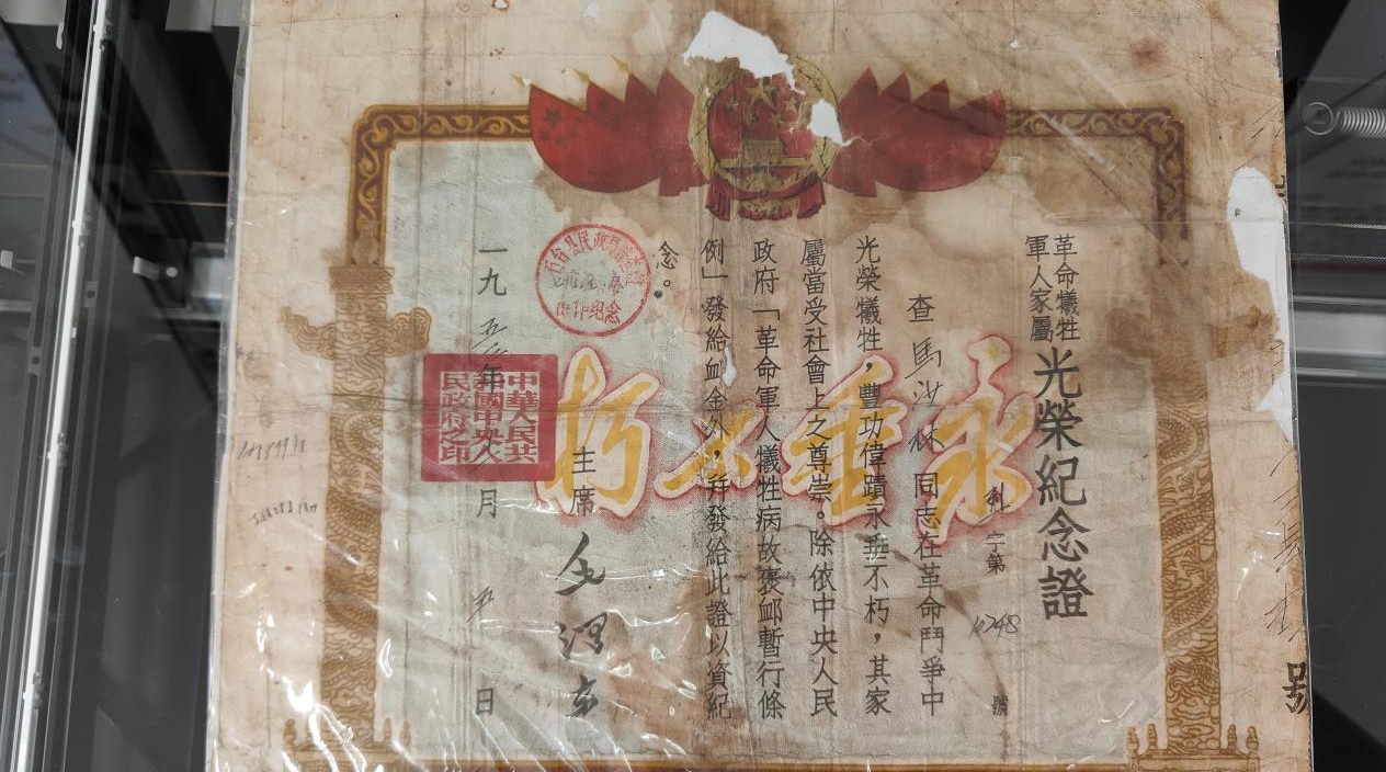 近日,石台县三增村村民马小松向石台县仁里镇武装部捐赠了三张《革命牺牲军人家属光荣纪念证》。