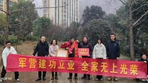 2月12日一大早,在热闹的锣鼓声中,肥西县军地一行为荣立二级表彰现役军人束庆丰家庭送去“二级表彰荣誉之家”牌匾、喜报和慰问金。
