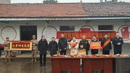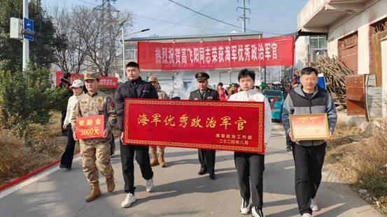 1月26日,五河县小圩镇四陈村热闹非凡,军地领导带领送喜报队伍,为荣立二等功的陈业挺家庭送去了沉甸甸的喜报和诚挚的祝福。