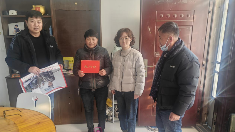 1月21日上午,宿州市埇桥区人武部政委舒彬、区退役军人事务局局长潘永一行前往朱仙庄镇工人村,向荣立二等功现役军人秦建家庭送去喜报。