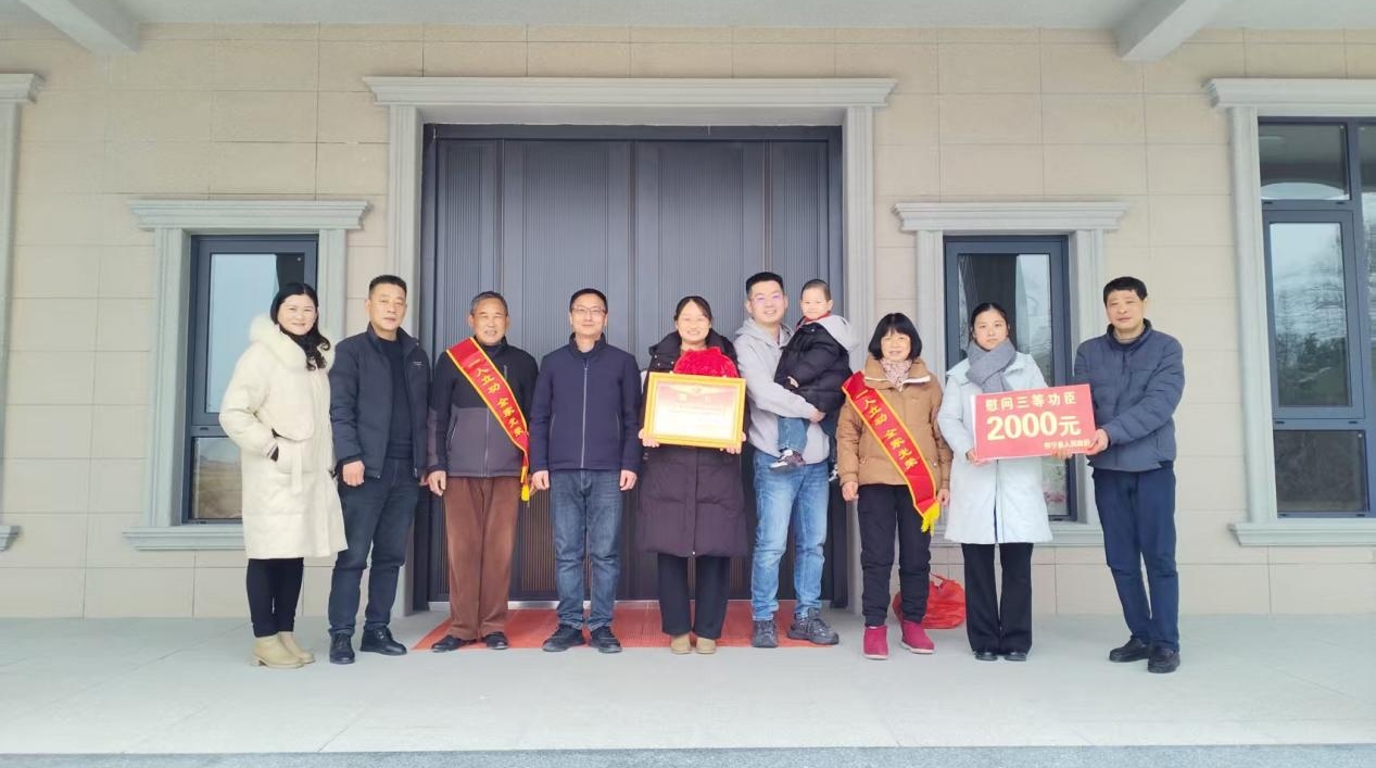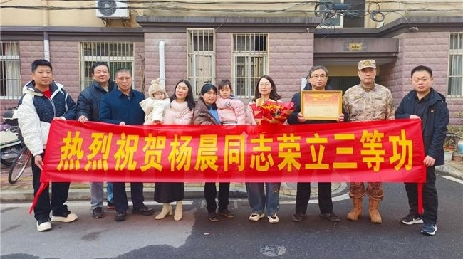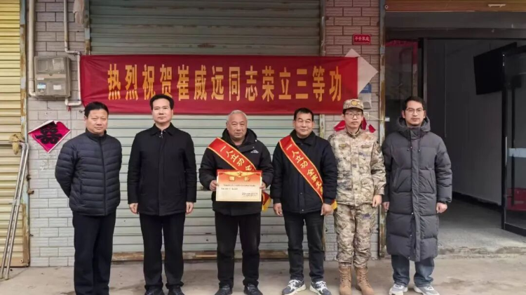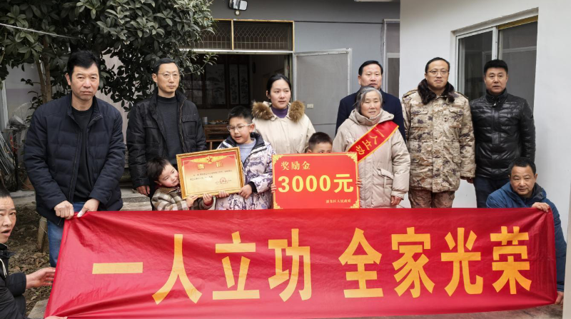 2月6日,宿州市埇桥区退役军人事务局、区人武部分别来到杨庄镇和褚兰镇,与属地党委等主要负责同志一行,为荣立二等功的现役军人张雨成和荣立二等功、三等功的现役军人周新建送去立功喜报和慰问金,向功臣家庭致以崇高的敬意和热烈的祝贺。