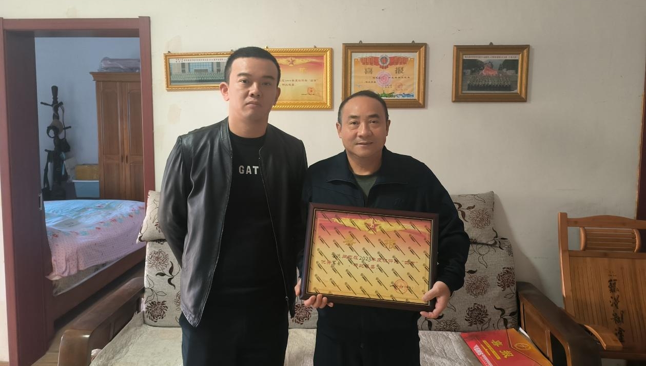 为弘扬拥军优属的优良传统,营造“关心国防、尊崇军人、热爱部队、敬重英雄”的社会氛围,近日,天宝社区为荣立四有优秀军士的现役军人家庭开展送喜报活动。