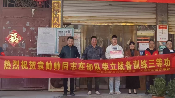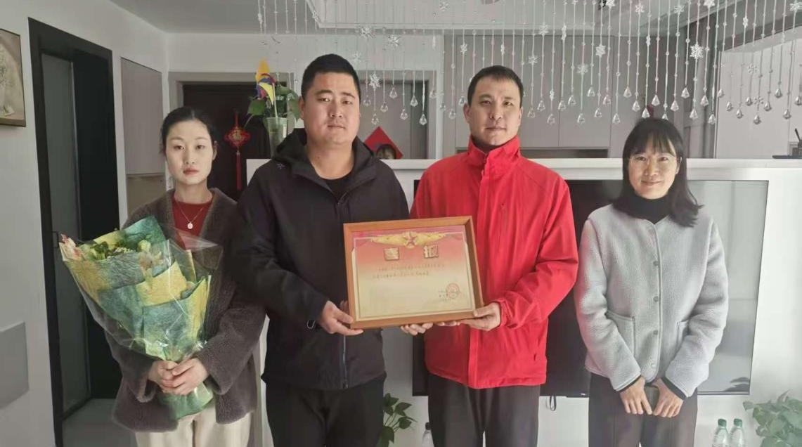 合肥市新站高新区瑶海社区退役军人服务站为现役军人家庭送上三等功喜报