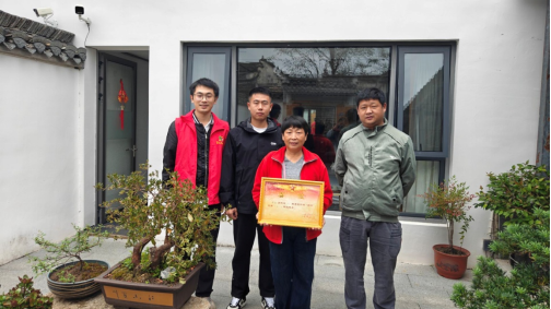 近日,黟县宏村镇退役军人服务站一行来到宏村村,将现役军人韩磊获评“四有”优秀士兵的喜报和奖励金送到其母亲手中。