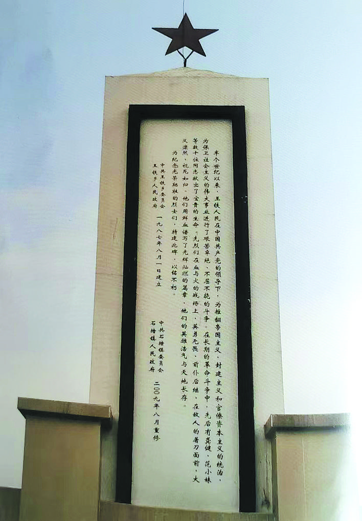 今天的王铁革命烈士纪念碑。