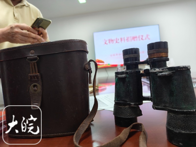 8月25日,一场简单而又庄重的捐赠仪式在安徽革命军事馆筹建办会议室举行。71岁的傅勇小心翼翼地拿出了一架望远镜,心疼地对记者说:“你看,时间久了,这个带子都断了。”