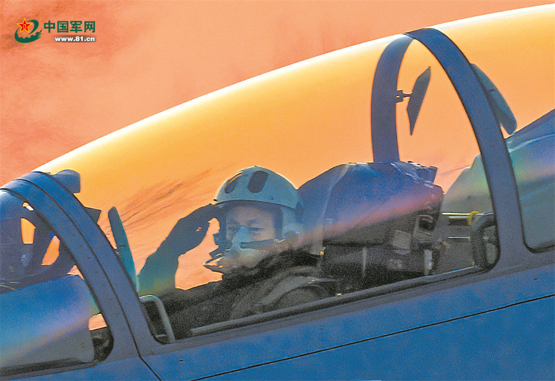 飞行员伴着晚霞出征