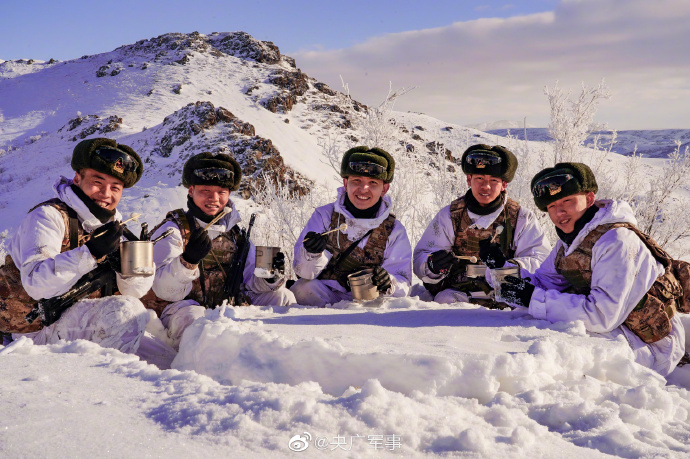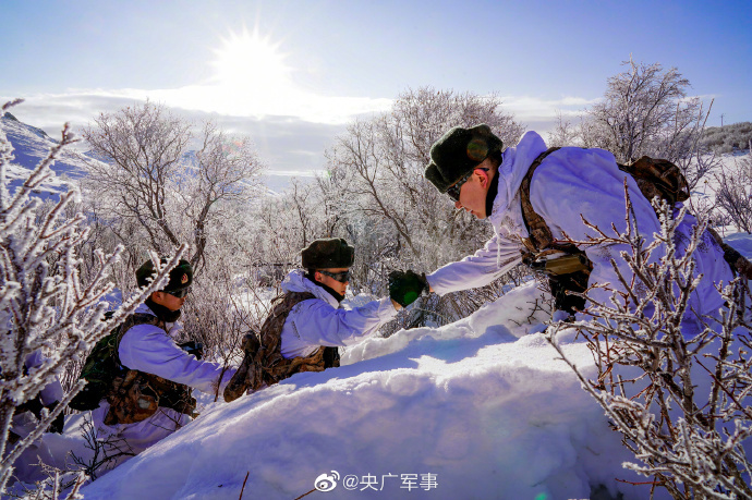 近日,新疆塔城军分区库则温边防连官兵踏上风雪巡逻路。经过6个小时的长途跋涉,边防官兵到达某执勤点位,并展开警戒观察。边关有我们在,请祖国和人民放心!致敬!