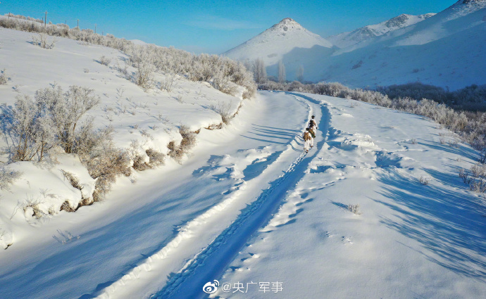 新疆塔城军分区库则温边防连官兵徒步6小时踏雪巡逻