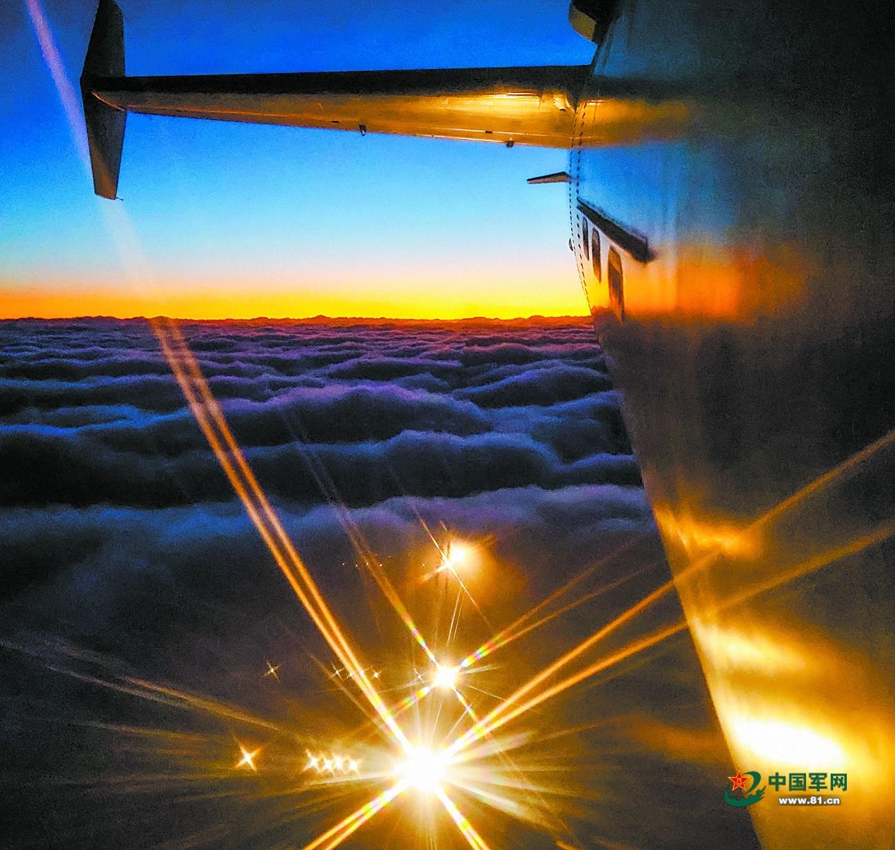 夕阳下,战机升空训练。