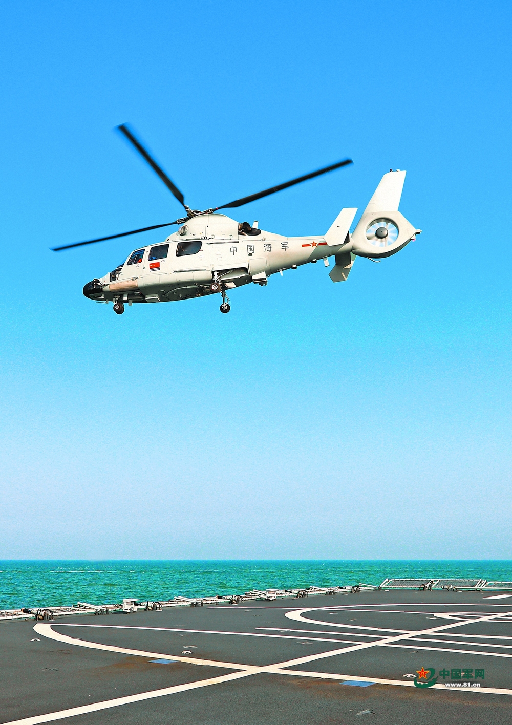 舰载直升机起降训练。