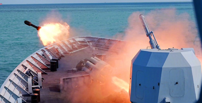 近日,东部战区海军某驱逐舰支队组成舰艇编队开展多科目实战化训练,有效检验官兵连续作战能力。