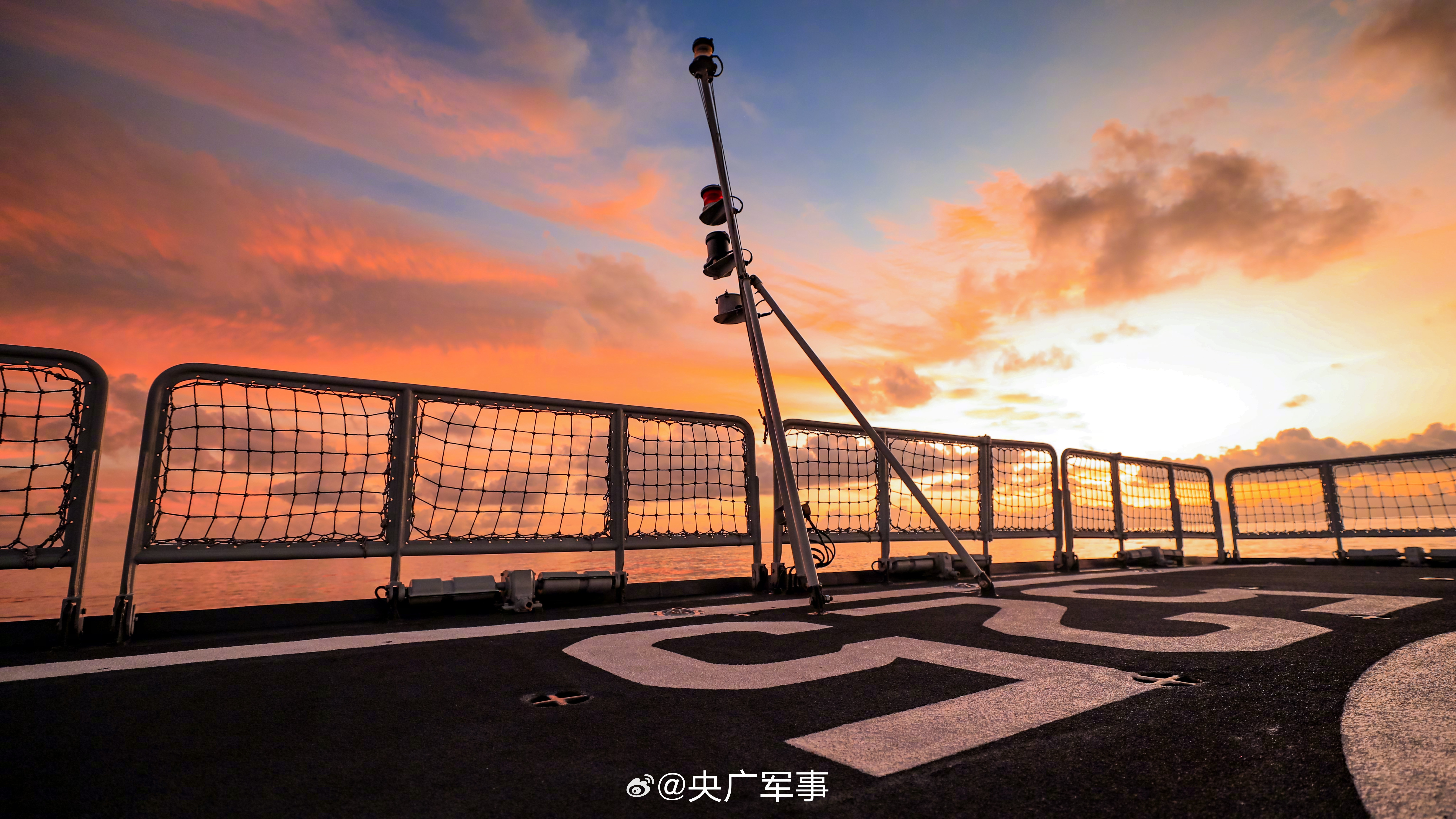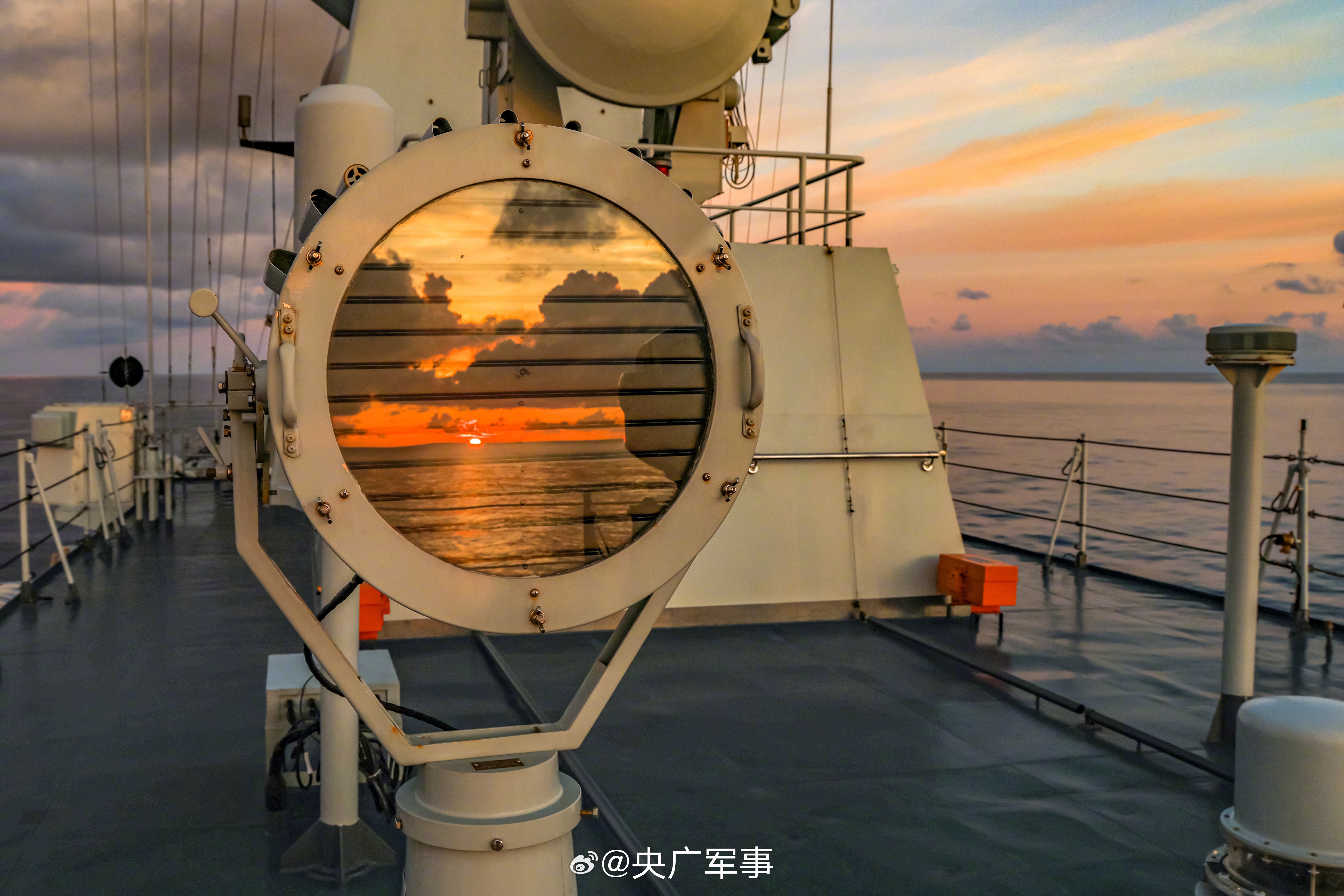 战舰与霞光同框上演硬核浪漫