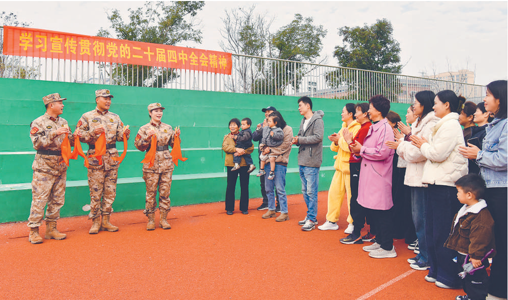连日来,安徽省砀山县人武部组织民兵文艺骨干进乡村、进社区、进景区,采取快板说唱的形式宣传党的二十届四中全会精神。李金春摄