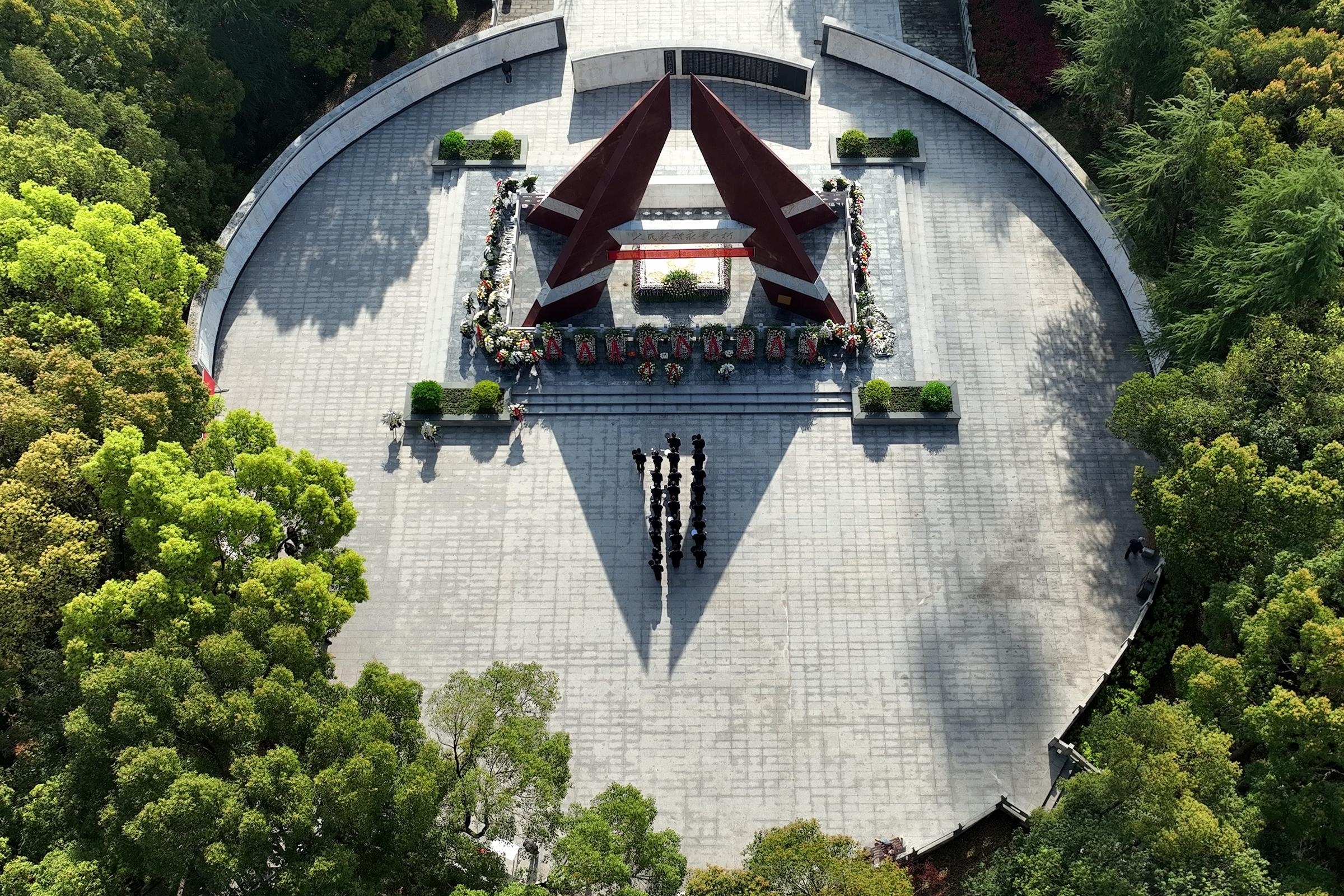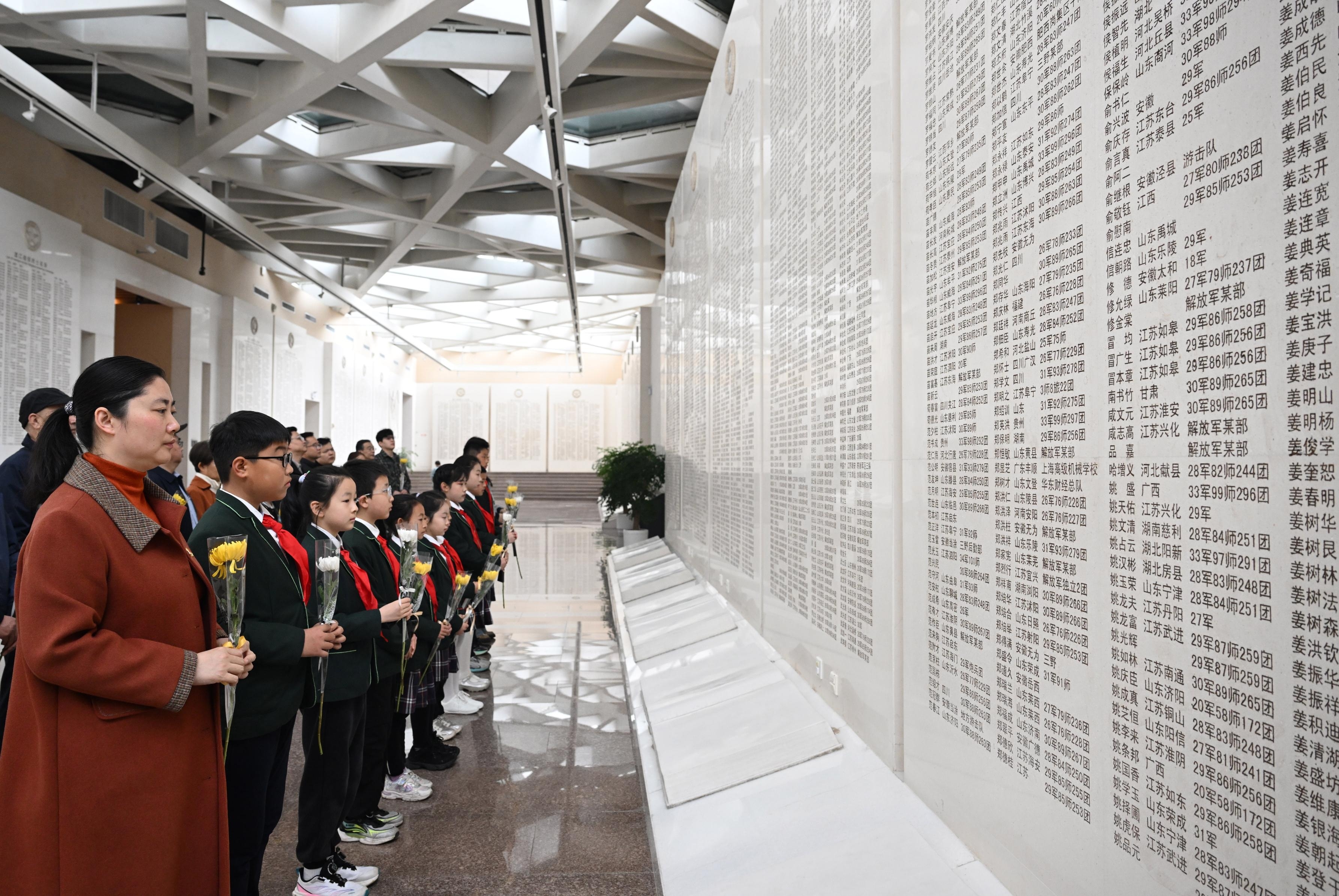 3月31日,位于合肥市巢湖之畔的渡江战役纪念馆内,各界人士为在渡江战役中牺牲的英烈们送上鲜花,寄托哀思,传承英烈遗志。记者 张大岗 摄