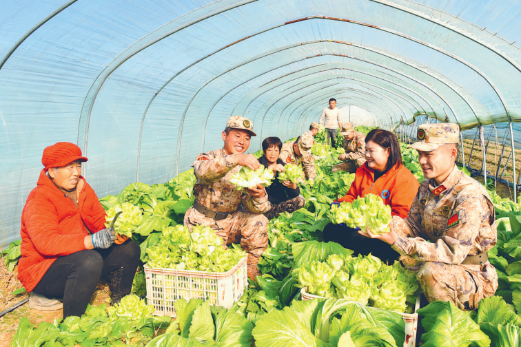12月中旬,安徽省砀山县人武部组织民兵分队帮助村民采收蔬菜。