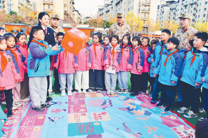 12月9日,安徽省合肥市庐阳区人武部组织开展“迷彩国防校园行”活动。