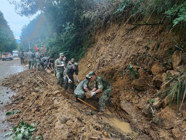 军民合力,奋战不停!连日降雨导致榆村乡境内出现多处道路塌方,给人们正常通行和抢险救援带来很大影响。灾情发生后,该乡及公路部门及时出动挖掘机和人员进行清理,很快抢通了道路,不久又有新的塌方出现。火箭军某部得悉这个情况后,立即派出50余名官兵组成突击队赶赴该乡紧急驰援。一到现场,官兵们迅速抡起铁锹、铁凿等工具,和地方各界救援人员一起开挖泥土、疏通沟渠,不到半天时间就将30米长的排水沟清理疏通完毕。路过的行人见状,纷纷竖起大拇指,为军民同心、合力抗洪叫好点赞。