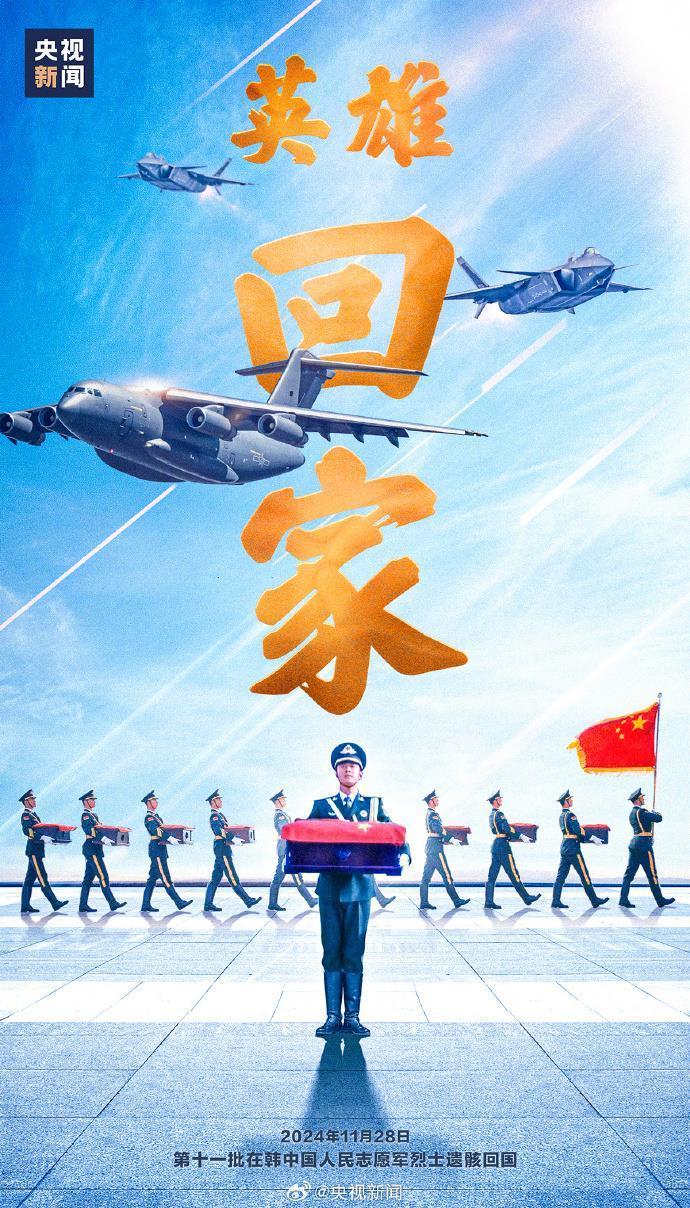 第十一批在韩中国人民志愿军烈士遗骸今日回国