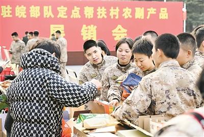 春节期间,驻皖部队组织消费帮扶活动,助力定点帮扶村销售农副产品。