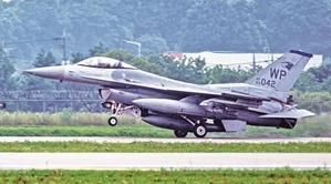7月9日,1架美空军F-16战斗机降落在韩国乌山基地。